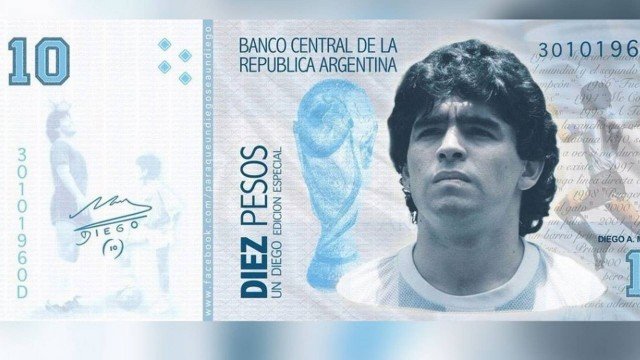 Campanha na web pede o rosto de Diego Maradona na nota de 10 pesos