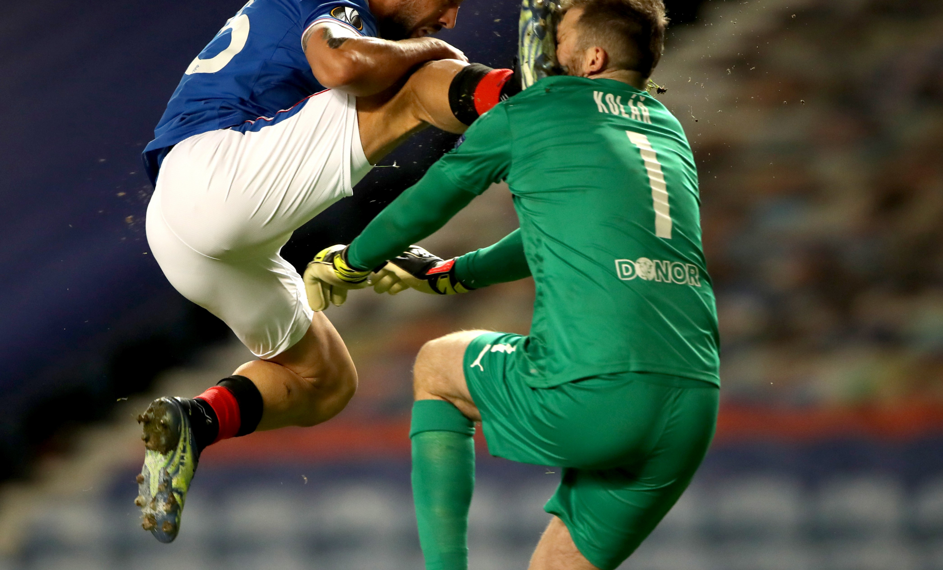 Goleiro sofre impressionantes cortes no rosto após levar voadora durante partida da Liga Europa