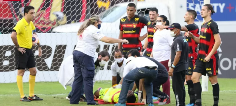 Goleiro do Sport sofre choque e é levado ao hospital com fratura no rosto.