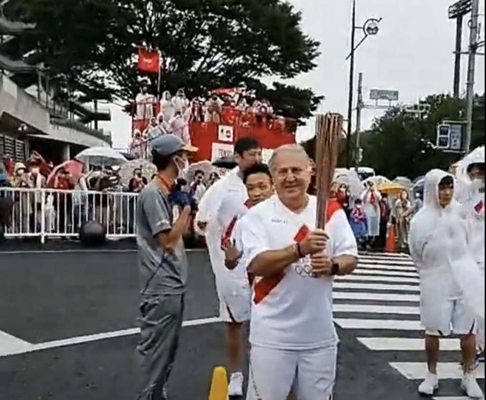 Zico participa do revezamento da tocha olímpica em Kashima, no Japão