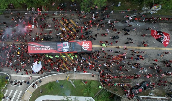 Abraçado pela torcida, Flamengo inicia viagem para a final da Libertadores com escala em Porto Alegre