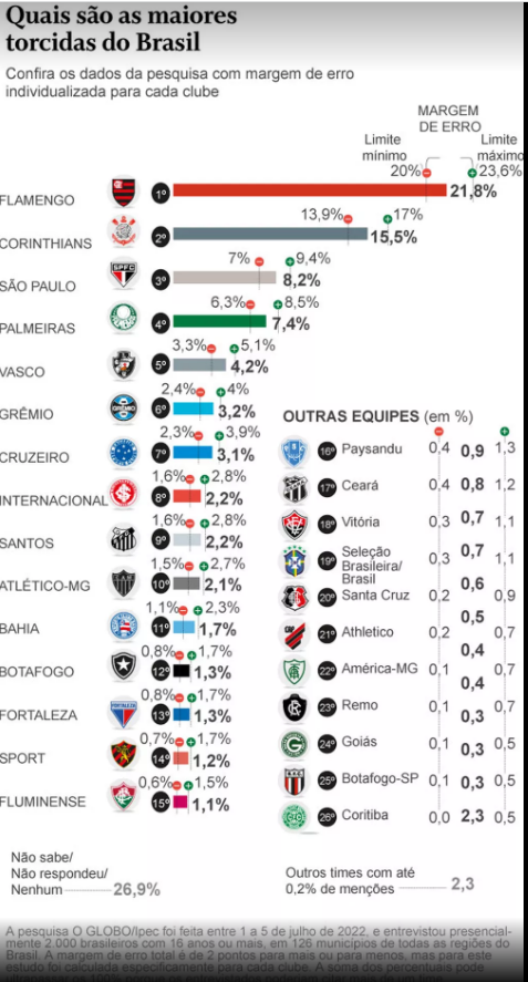 Pesquisa inédita O GLOBO/Ipec aponta as 26 maiores torcidas do Brasil