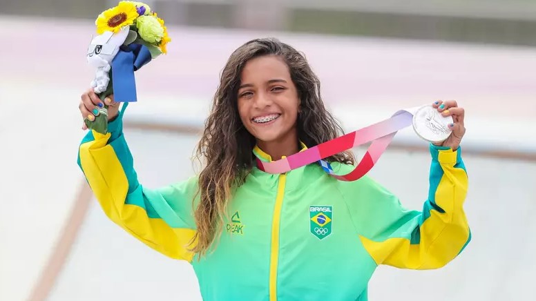 peito conquistada momentos antes, Rayssa Leal – a "Fadinha" –, mais jovem