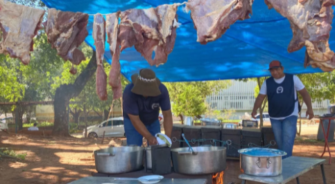 Tudo está sendo feito na praça pública. O menu pantaneiros vai servir arroz