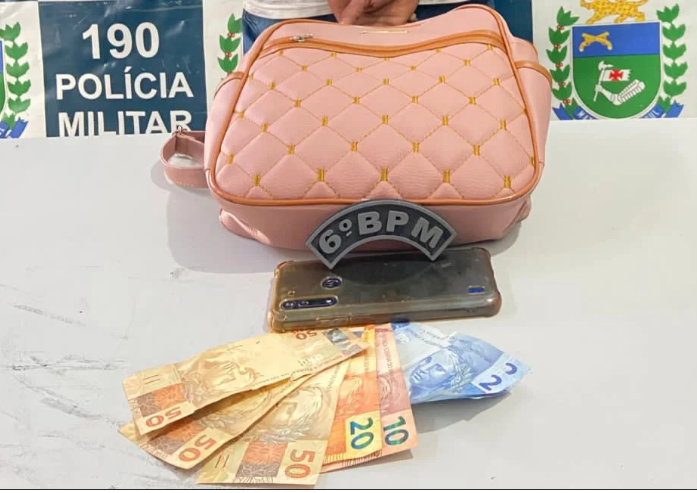 Em revista no local, a equipe localizou em cima de uma árvore a mochila roubada, um celular, uma CNH e dinheiro da vítima.