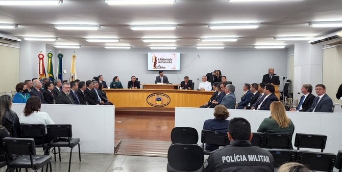 O ato ocorreu ontem no Plenário Dr. Léo de Medeiros Guimarães, do Poder Legislativo corumbaense, comandado pelo presidente da Câmara, vereador Roberto Gomes Façanha. Foi mais um atrativo da noite marcada também pela outorga de Medalhas do Mérito Legislativo Antônio Maria Coelho a personalidades que realizam um grande serviço em prol do desenvolvimento da cidade.