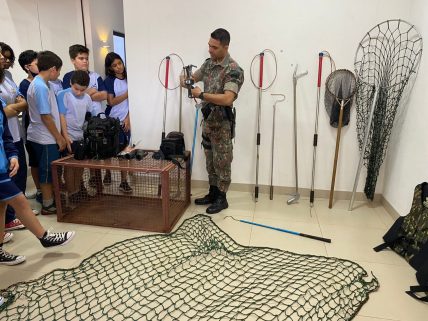 Hoje (24), a equipe da Polícia Militar Ambiental de Batayporã realizou palestra e exposição de equipamentos de fiscalização e captura de animais aos alunos do Colégio Adventista no município de Nova Andradina. A palestra tratou sobre a importância da conservação do meio ambiente e uso consciente dos recursos naturais, bem como os problemas ambientais encontrados pela PMA. 80 alunos com idade entre 10 e 16 anos participaram da atividade.