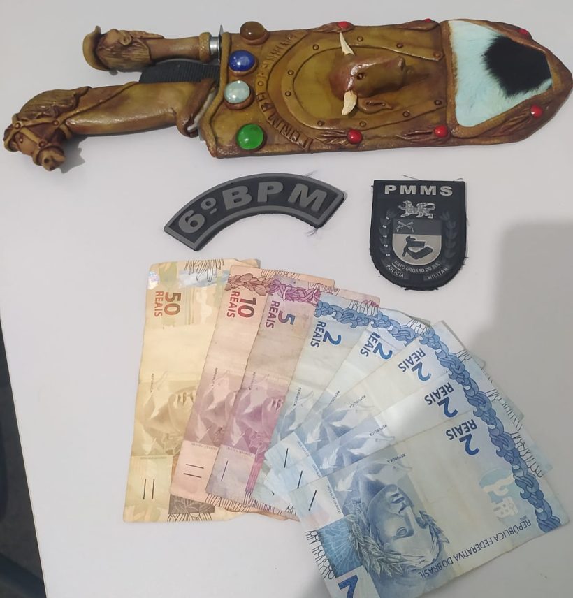 O autor foi encaminhado para a delegacia para as providências cabíveis, sendo também apresentado a quantia de R$75,00 (setenta e cinco reais) e o facão artesanal recuperado.