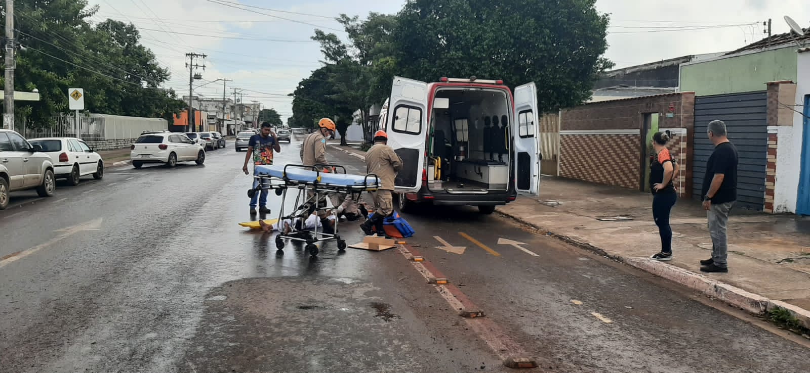 Corumbá (MS) – A vitima, a sra. B.C.M.M, de 23 anos, derrapou com sua motocicleta Bis, na rua Cabral, onde veio a sofrer escoriações pelo corpo ( ferimentos abrasivos) e se queixava de dores no punho do membro superior direito. No local foi constatado que, devido ao piso molhado pela chuva, a vitima, ao passar por um quebra mola, veio a derrapar quando freiou o veiculo. Foi socorrida e encaminhada ao pronto socorro local.