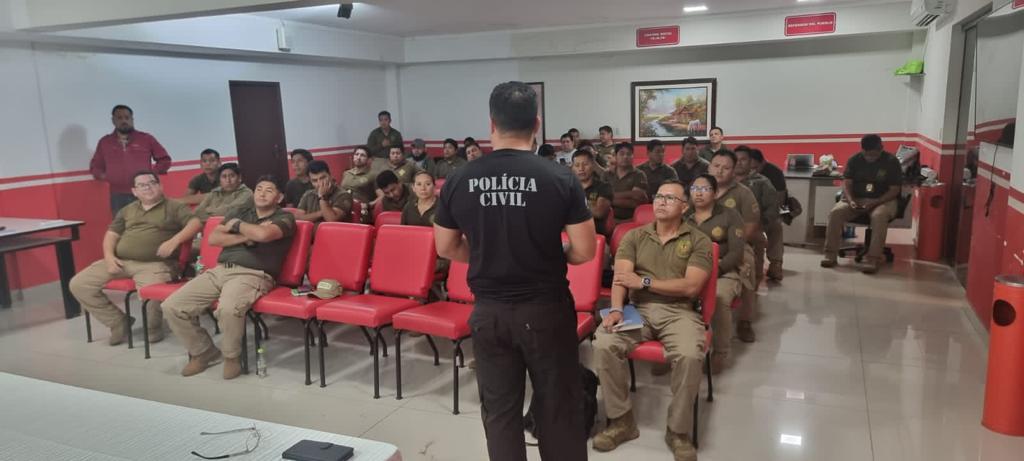 A Polícia Civil do Estado do Mato Grosso do Sul, por intermédio do Delegado Titular da Delegacia de Polícia de Ladário, Guilherme Oliveira Pena; Delegado Titular da 1DP de Corumbá, Elton Alves de Sá Júnior; e Investigador de Polícia da Delegacia de Ladário, Marcos Sérgio Tiaen, realizou nos dias 19,20 e 21 de maio visita institucional e palestra aos policiais do DIPROVE (Dirección Departamental de Prevención e Investigación de Robo de Vehículos), a convite do Coronel Walter Sossa Rivera, na cidade de Santa Cruz de La Sierra – Bolívia.