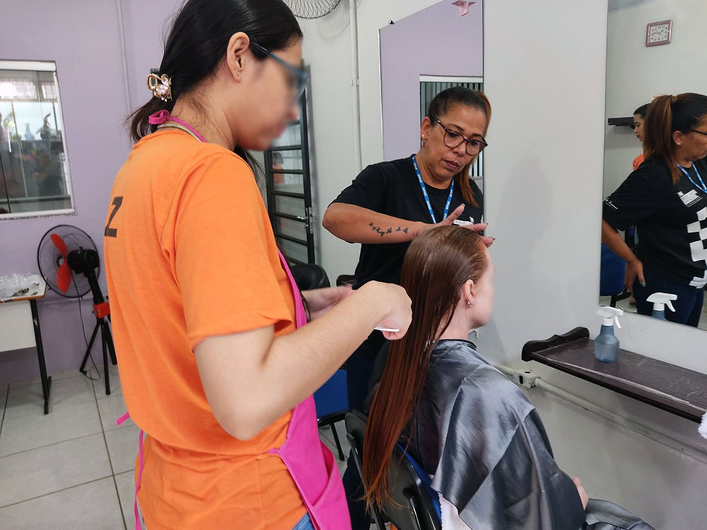 Qualificação profissional na área da beleza e de cuidados pessoais tem sido uma das apostas da Agepen (Agência Estadual de Administração do Sistema Penitenciário) para a reinserção de mulheres em cumprimento de pena em Mato Grosso do Sul, representando possibilidade de emprego e geração de renda quando estiverem em liberdade. Por meio de parcerias, por exemplo, reeducandas do Estabelecimento Penal Feminino “Irmã Irma Zorzi”, na capital, estão se capacitando no curso de técnicas básicas de cabeleireiro.