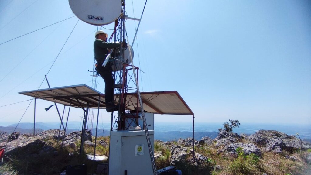 Antenas e câmeras instaladas na região da Serra do Amolar passam por manutenção pela equipe do Instituto Homem Pantaneiro (IHP) com apoio da Marinha do Brasil, por meio do 6⁰ Comando do Distrito Naval, localizado em Ladário. Esses equipamentos fazem parte do sistema Pantera, usado pelo IHP para mapear uma área de até 1 milhão de hectares no Alto Pantanal e detectar sinal de fumaça em questão de minutos.
