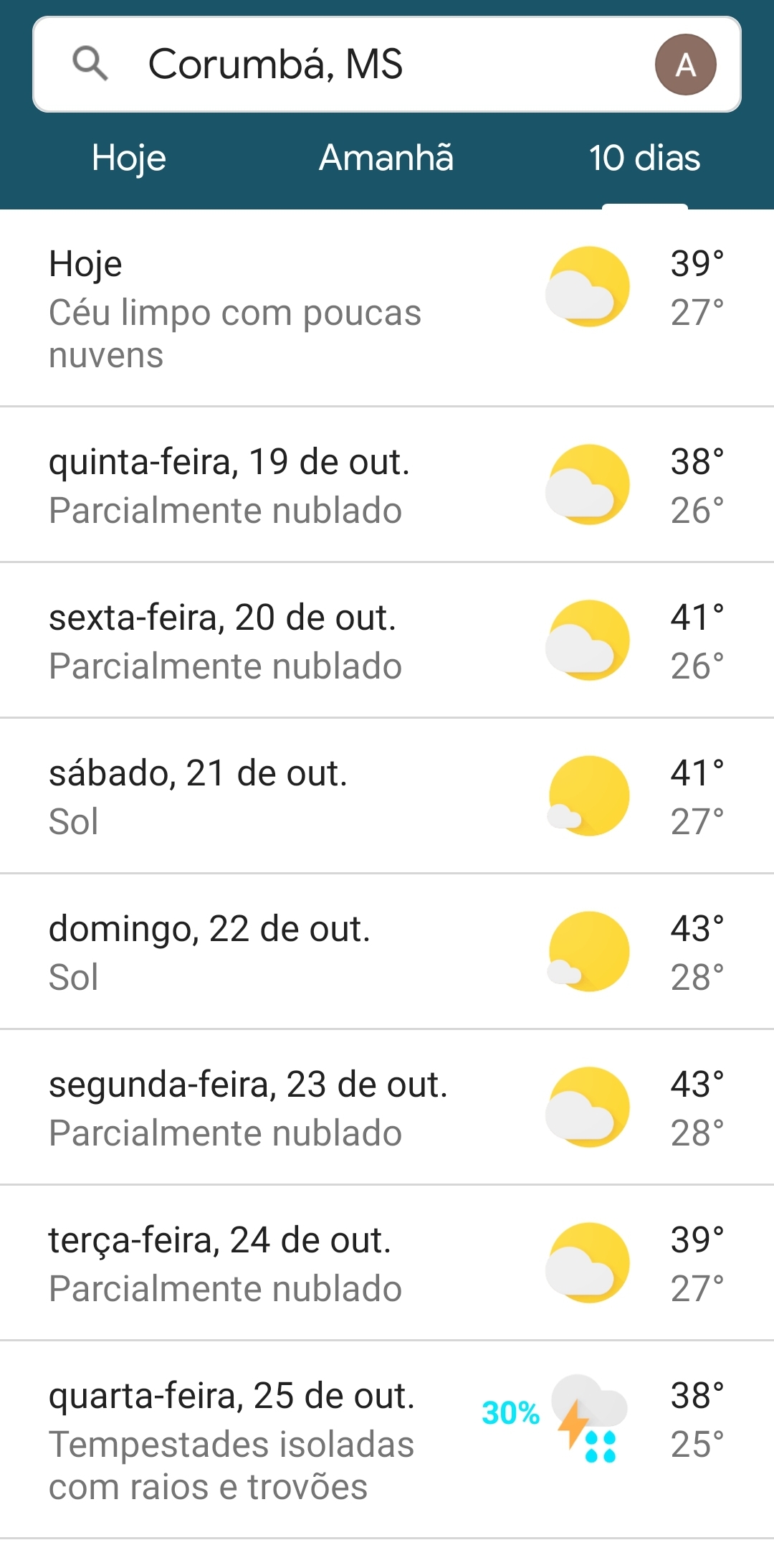 Previsão da temperatura nos próximos dias em Corumbá-MS