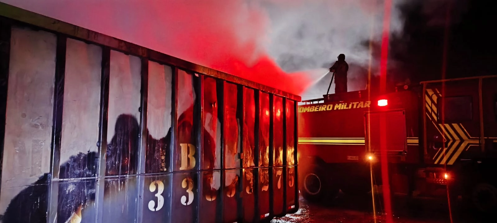 19h00 – Mais tarde, uma guarnição de combate a incêndio foi deslocada até uma empresa localizada na Avenida Nossa Senhora da Candelária, no bairro Maria Leite, onde um contêiner pegava fogo. No interior da estrutura estavam armazenados diversos materiais que alimentaram as chamas, causando intensa produção de fumaça visível a longa distância.