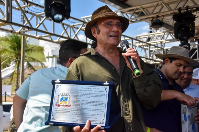 O violeiro, músico, compositor e ator brasileiro Almir Sater se tornou neste sábado, 20, o mais novo Cidadão Corumbaense. Foi durante cerimônia militar realizada pelo Exército Brasileiro para celebrar os 250 anos do Forte de Coimbra, construído na região do Nabileque, em Corumbá.