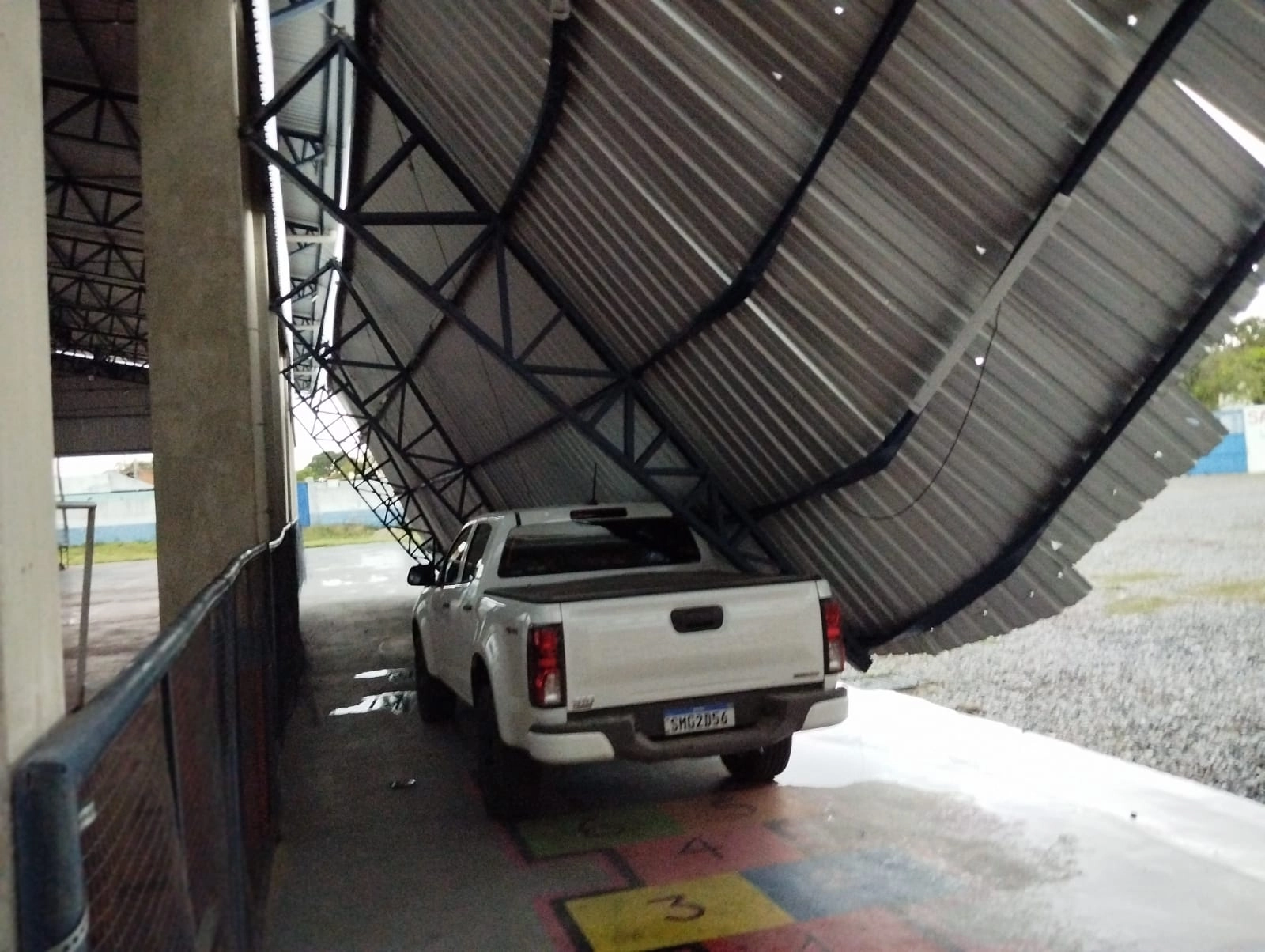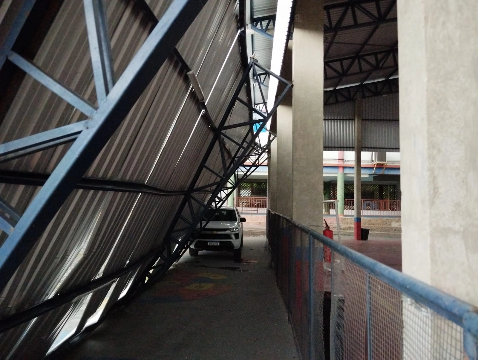 No Colégio Santa Tereza, a estrutura da quadra cedeu parcialmente e atingiu um veículo que estava estacionado no local. Não houve vítimas, apenas danos materiais.