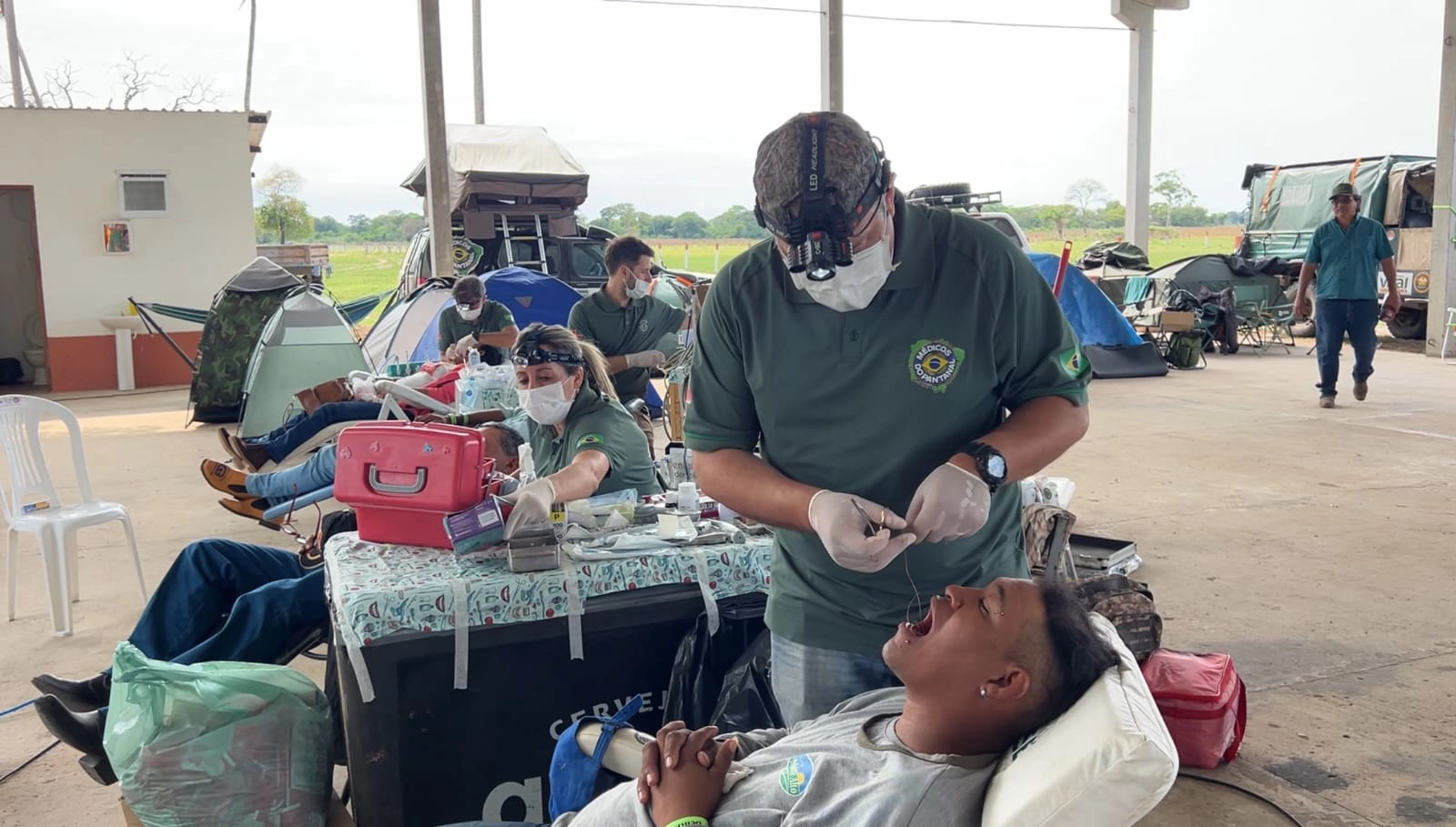 “Conseguimos oferecer um atendimento de muita qualidade e procuramos resolver os problemas em poucas horas, inclusive confeccionando próteses dentárias nas próprias bases de atendimento”, relata Elisclay Silva, cirurgiã-dentista e veterana da expedição.