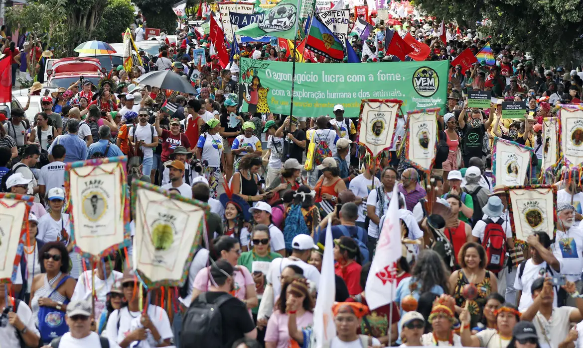 A marcha foi organizada por integrantes da Cúpula dos Povos e da COP das Baixadas, e teve a participação de representantes de organizações de todos os continentes, de povos tradicionais e das comunidades paraenses.