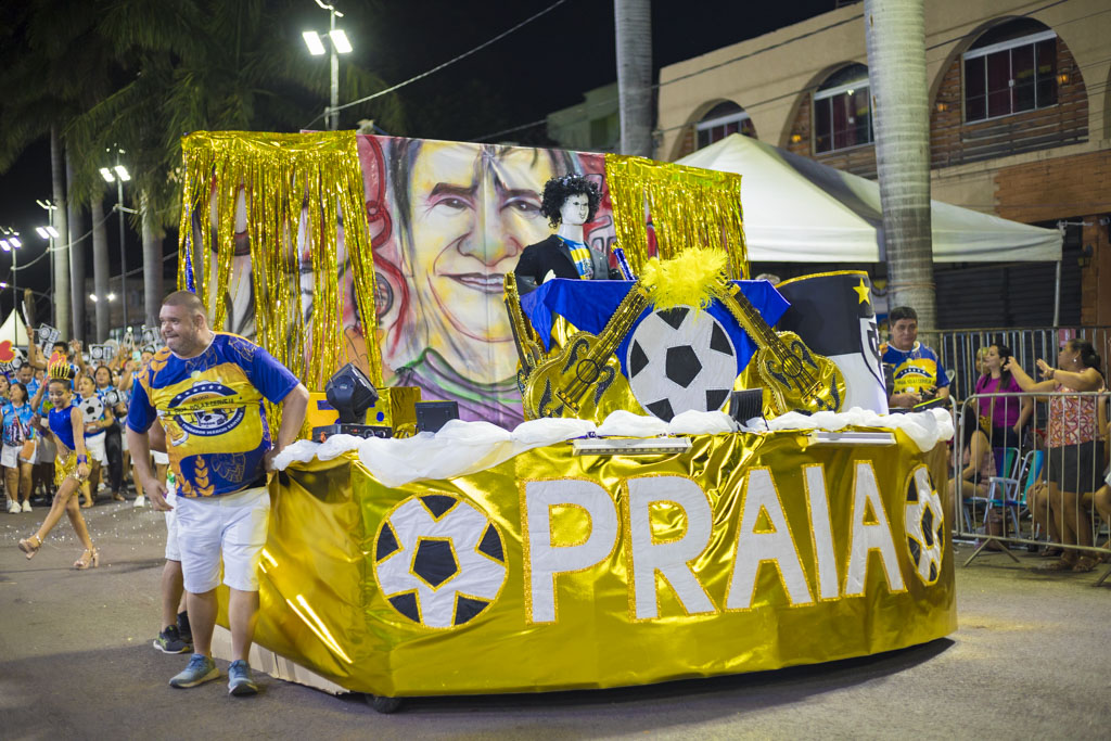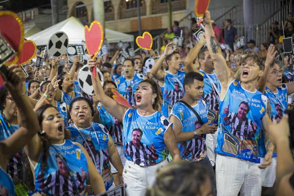 O Bloco Praia, Bola e Cerveja levou irreverência à passarela ao homenagear o radialista Jonas de Lima, conhecido como “a voz da multidão”. Com fantasias criativas, bateria animada e grande interação com o público, celebrou a comunicação popular e a essência democrática do carnaval.