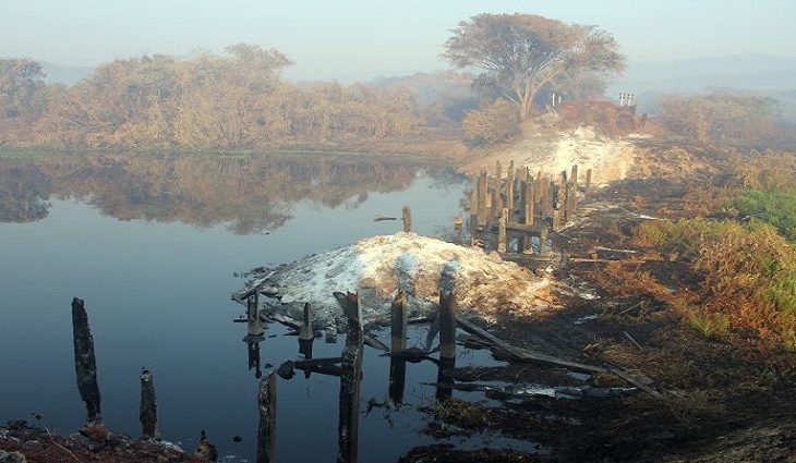 O fogo que se alastrou pelos campos das fazendas que circundam a MS-228 (Estrada-Parque), em Corumbá, desde a última quarta-feira (5), deixou um rastro de destruição e uma ponte de madeira sobre uma vazante, construída pelo Governo do Estado, totalmente queimada. A vegetação ainda queima e a fumaça tomou conta da região, encobrindo a estrada.